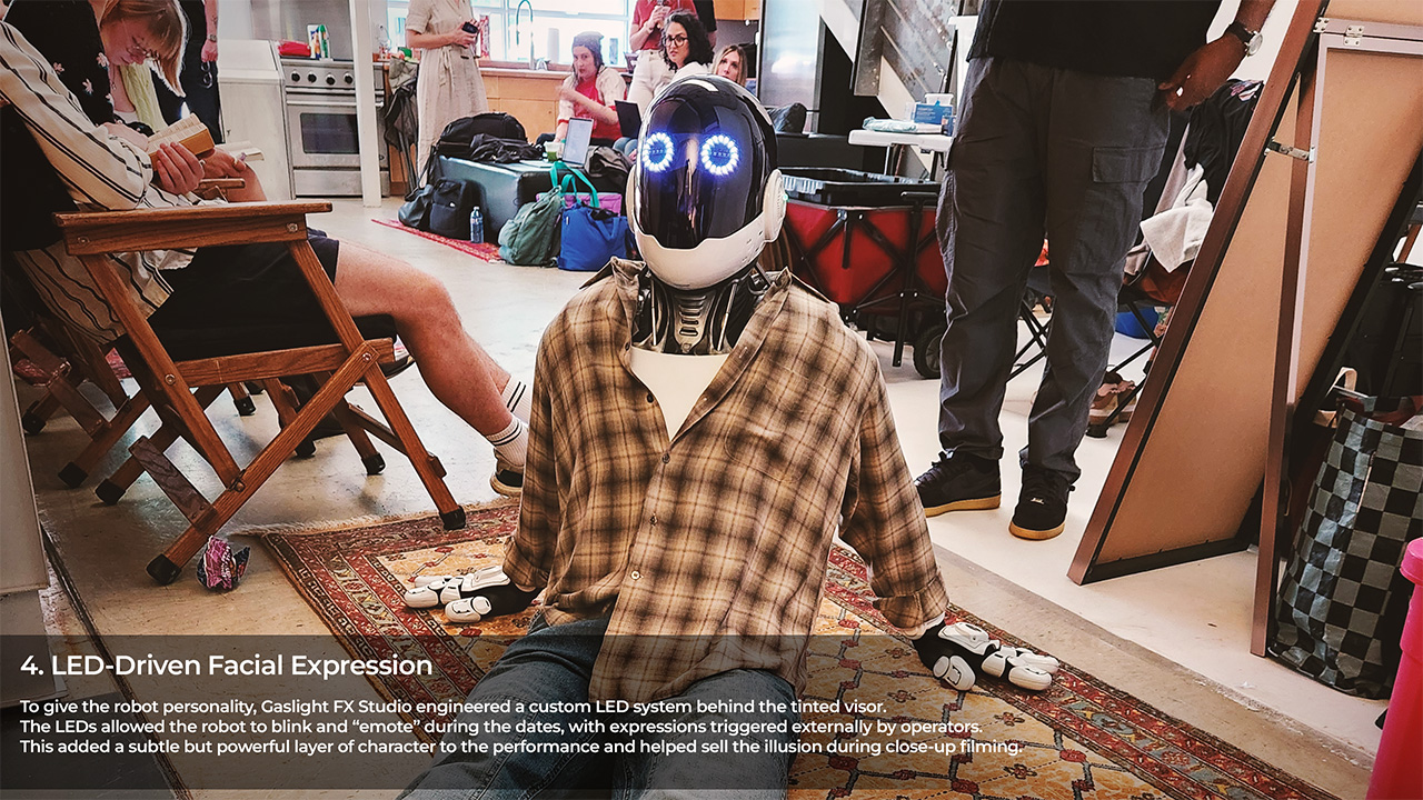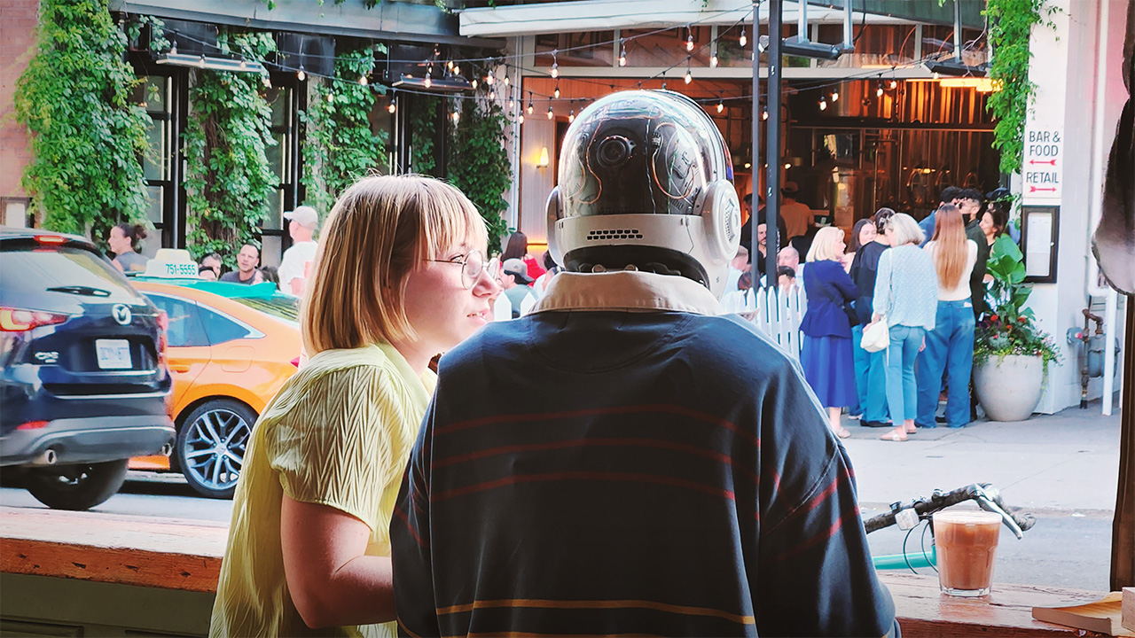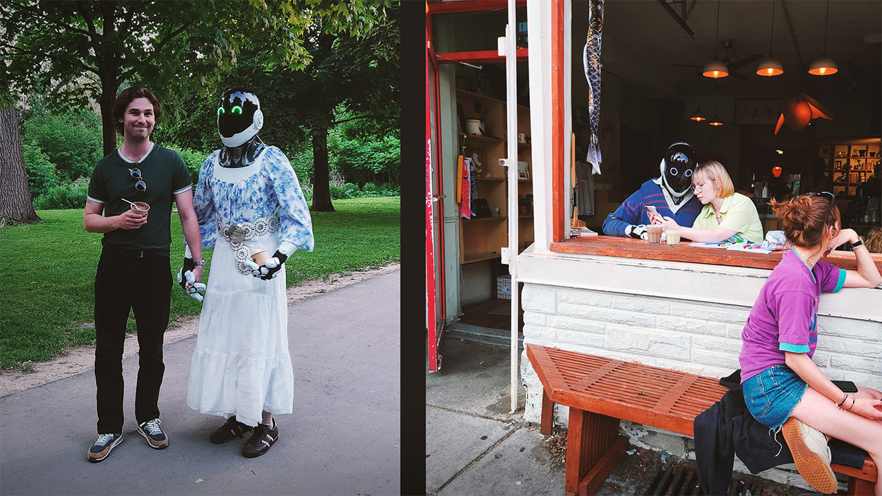 The agency’s concept required a robot that felt futuristic, expressive, and believable enough to provoke genuine reactions from the public. The performer would be filmed covertly as they went on staged dates around Trinity Bellwoods Park, while influencers documented the experience for social media.